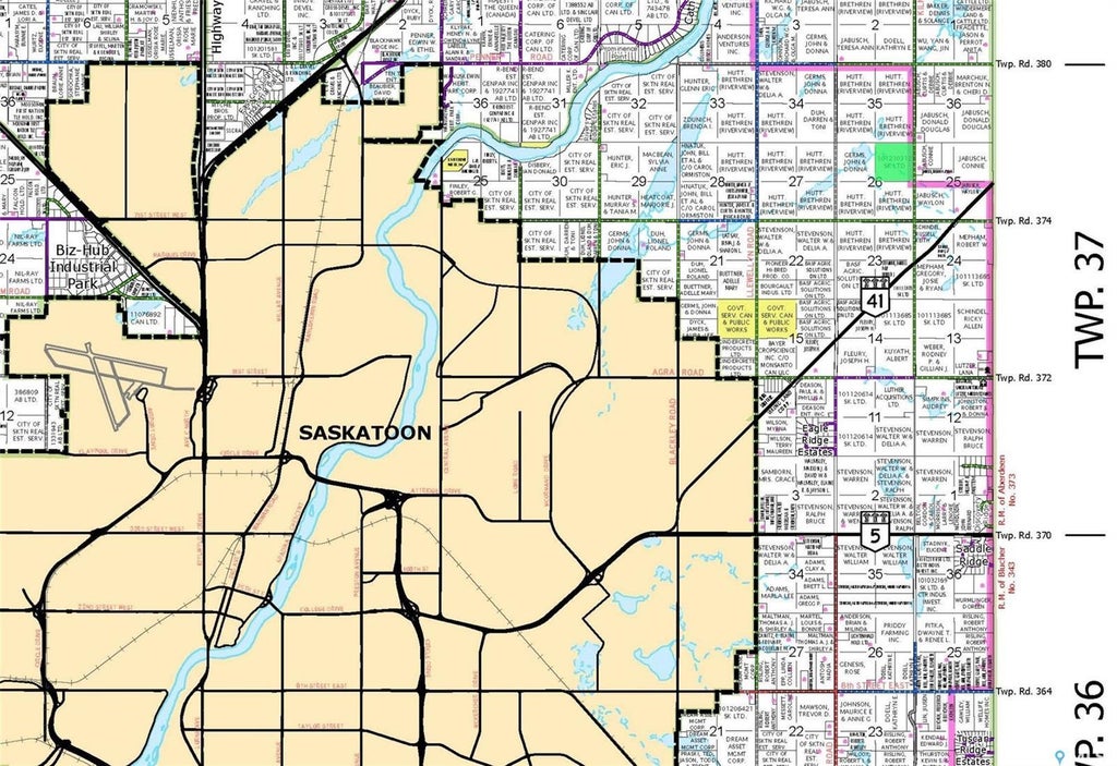 Located approximately 6 miles northeast of Saskatoon near the HWY 5 and 41 junction, this farmland sits within the P4G area, offering future development potential. Currently rented for the next two years, it provides immediate income opportunities for investors. Don't miss out on this exceptional property!