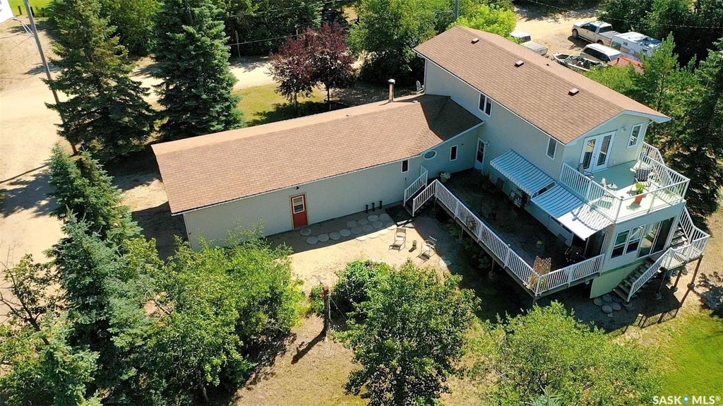 This one owner, four season lovingly cared for lake property is an opportunity you don't want to miss. With approximately 2000 sqft and a two car garage this home sits on a large Lakeview lot. The large deck greets you and is equipped with two retractible shades and flows into the quaint sunroom. The main level of the home has a like new feel with a major addition done in 2010 adding the kitchen/dining, bedroom, bath and second story!!! With a beautiful white eat in kitchen, pantry, island and large dining area. The main living room is large and perfect for gathering with a beautiful updated wood burning fireplace that the owners enjoy through the winter months and on colder evenings. There are two large bedrooms, a four piece bath, laundry and utility to finish off the main. Upstairs there is a family room that could be a potential fifth bedroom if one chose that has patio doors to go out and enjoy breathtaking views of the lakes and sunsets! There are two more good sized bedrooms that are the perfect spot for guests. Outside there is large fire pit area sheltered by trees and is just steps away from the sandy beaches of Good Spirit lake. There is also a nearby marina available for boat docking if you wish! Lake living isn't just for the warmer months with easy access to cross-country ski trails( Good Spirit Cross Country ski club keeps the trails groomed with access to a warmup shack), ice fishing, hunting for geese, deer and Moose, as well as miles and miles of snow mobile trails!!! Burgis Beach is a welcoming little lake community with so much to offer. Don't miss out!!!