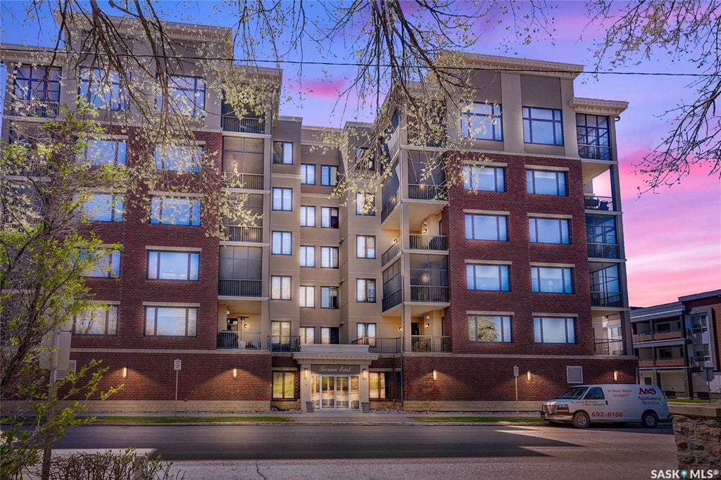 Unparalleled elegance & sophistication at Terrace East, a residence that epitomizes luxury living w/views of Crescent Park. This extraordinary condo is a sanctuary of style. Boasting granite, beautiful NEW hardwood flooring in the main living area & tile floors, that set a standard for upscale living. The grandeur of the 12-foot ceilings w/8ft solid core doors, add to the expansive open-concept living, magnified by floor to ceiling windows inviting an abundance of natural light w/access to 2 Balconies w/1 being screened in. Living Room adorn by sheer space, hosts a Gas Fireplace w/A/V h/u, in addition to the b/i Sound System set thru out. Dining area hosts a table fit for a king. Kitchen is a masterpiece w/island, ceiling-height cabinetry, pantry, top-of-the-line appliances including trash compactor, promises to inspire culinary exploration. This living space isn’t finished yet, there is room for a gaming area, currently w/pool table & room for a bar & Patio Door leading to the NW Balcony to enjoy the summer sun overlooking the city skyline. Both balconies have natural Gas h/u & structured to support a hot tub if desired. There are 3 Bedrooms & Den that can used as 4th bedroom. Primary in the “East Wing” is a private retreat, complete w/Ensuite w/2 sinks, tile & glassed shower & a dream walk in closet. This wing is complete w/Den opening to the NE private screened in Balcony, welcoming the morning sun. The “West Wing” enjoys 2 bedrooms & Jack & Jill access to the 4pc. bath w/soaker tub & beautiful tile work & even a 2pc Bath. Terrace East is a secure luxury complex, offering 2 underground parking stalls, guest room, gym, mail & library Rms. 2 blocks of downtown w/a prestigious address across Crescent Park & steps to shopping, restaurants, & spas, ensuring a lifestyle of convenience & luxury. Click on the multimedia link to take a virtual tour of this Penthouse style condo & embrace the opportunity to live in one of the finest condominium buildings in the province.
